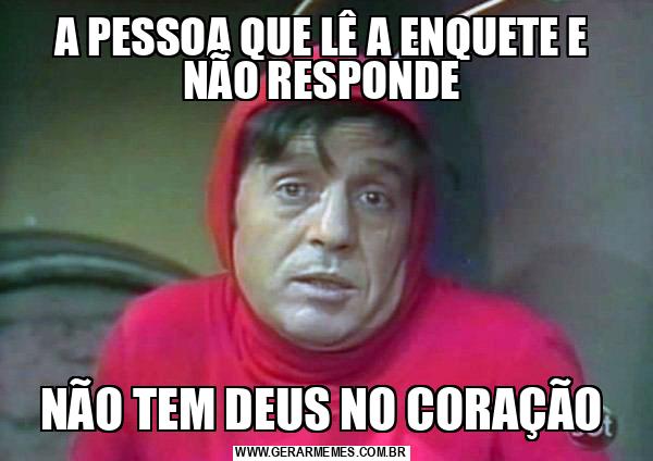 A PESSOA QUE LÊ A ENQUETE E NÃO RESPONDE NÃO TEM DEUS NO CORAÇÃO