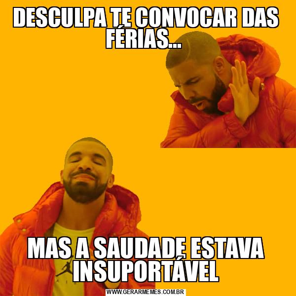 DESCULPA TE CONVOCAR DAS FÉRIAS... MAS A SAUDADE ESTAVA INSUPORTÁVEL