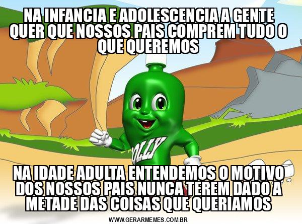 NA INFANCIA E ADOLESCENCIA A GENTE QUER QUE NOSSOS PAIS COMPREM TUDO O QUE QUEREMOS NA IDADE ADULTA ENTENDEMOS O MOTIVO DOS NOSSOS PAIS NUNCA TEREM DADO A METADE DAS COISAS QUE QUERIAMOS