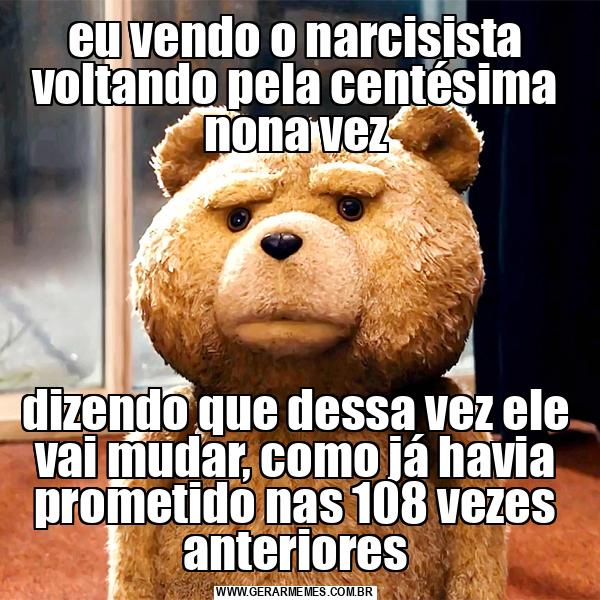 eu vendo o narcisista voltando pela centésima nona vez dizendo que dessa vez ele vai mudar, como já havia prometido nas 108 vezes anteriores