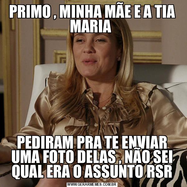 PRIMO , MINHA MÃE E A TIA MARIA PEDIRAM PRA TE ENVIAR UMA FOTO DELAS , NÃO SEI QUAL ERA O ASSUNTO RSR