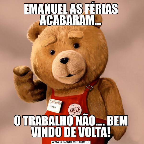 EMANUEL AS FÉRIAS ACABARAM... O TRABALHO NÃO.... BEM VINDO DE VOLTA!