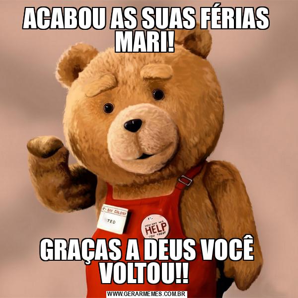 ACABOU AS SUAS FÉRIAS MARI! GRAÇAS A DEUS VOCÊ VOLTOU!!