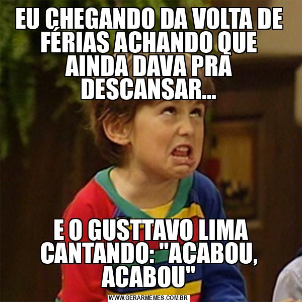 EU CHEGANDO DA VOLTA DE FÉRIAS ACHANDO QUE AINDA DAVA PRA DESCANSAR… E O GUSTTAVO LIMA CANTANDO: "ACABOU, ACABOU"