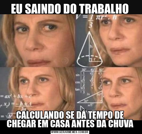 EU SAINDO DO TRABALHO CALCULANDO SE DÁ TEMPO DE CHEGAR EM CASA ANTES DA CHUVA