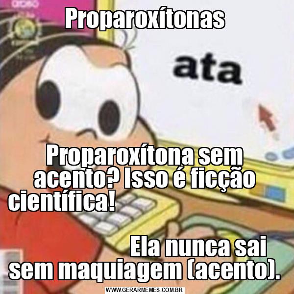 Proparoxítonas Proparoxítona sem acento? Isso é ficção científica! Ela nunca sai sem maquiagem (acento).