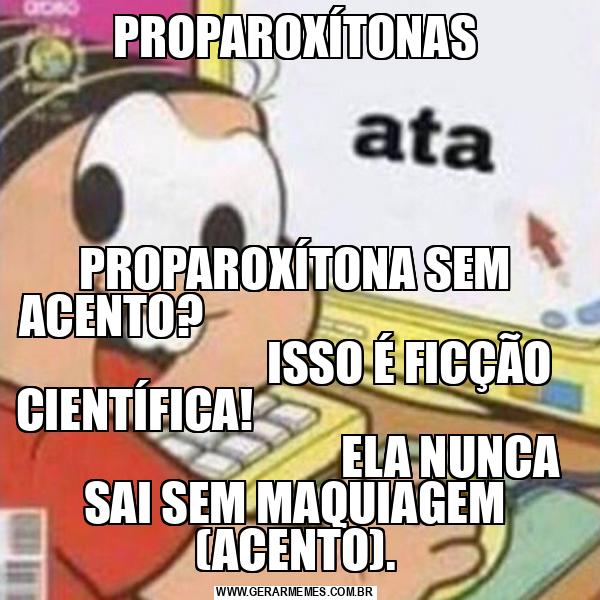 PROPAROXÍTONAS PROPAROXÍTONA SEM ACENTO? ISSO É FICÇÃO CIENTÍFICA! ELA NUNCA SAI SEM MAQUIAGEM (ACENTO).