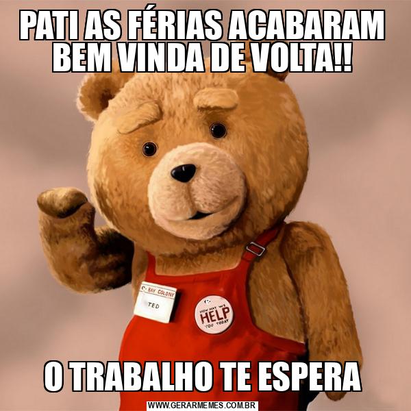 PATI AS FÉRIAS ACABARAM BEM VINDA DE VOLTA!! O TRABALHO TE ESPERA