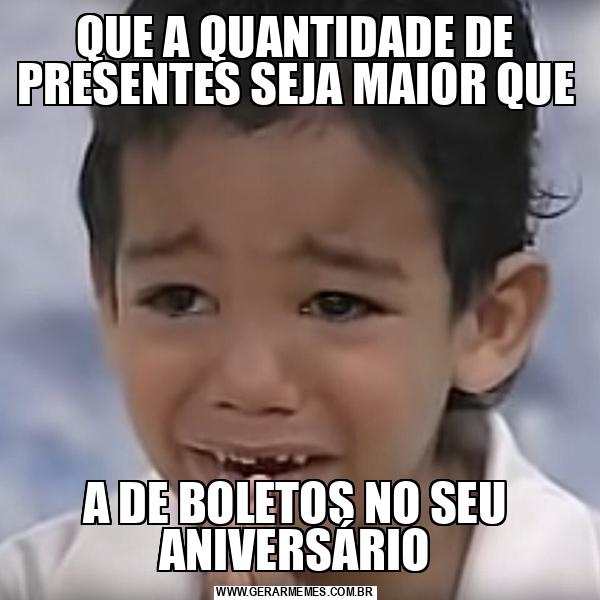 QUE A QUANTIDADE DE PRESENTES SEJA MAIOR QUE A DE BOLETOS NO SEU ANIVERSÁRIO