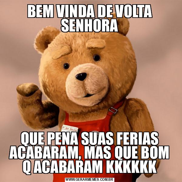 BEM VINDA DE VOLTA SENHORA QUE PENA SUAS FERIAS ACABARAM, MAS QUE BOM Q ACABARAM KKKKKK