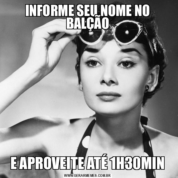 INFORME SEU NOME NO BALÇÃO E APROVEITE ATÉ 1H30MIN