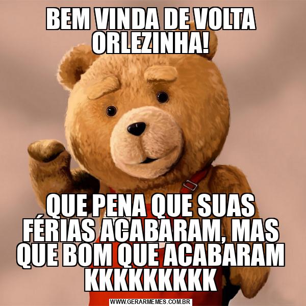 BEM VINDA DE VOLTA ORLEZINHA! QUE PENA QUE SUAS FÉRIAS ACABARAM, MAS QUE BOM QUE ACABARAM KKKKKKKKK