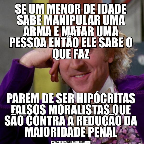 SE UM MENOR DE IDADE SABE MANIPULAR UMA ARMA E MATAR UMA PESSOA ENTÃO ELE SABE O QUE FAZ PAREM DE SER HIPÓCRITAS FALSOS MORALISTAS QUE SÃO CONTRA A REDUÇÃO DA MAIORIDADE PENAL