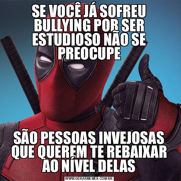 SE VOCÊ JÁ SOFREU BULLYING POR SER ESTUDIOSO NÃO SE PREOCUPE SÃO PESSOAS INVEJOSAS QUE QUEREM TE REBAIXAR AO NÍVEL DELAS