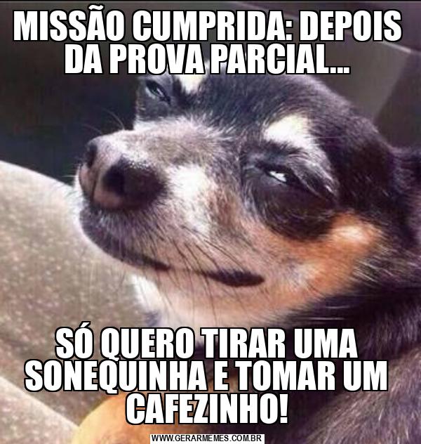 MISSÃO CUMPRIDA: DEPOIS DA PROVA PARCIAL... SÓ QUERO TIRAR UMA SONEQUINHA E TOMAR UM CAFEZINHO!