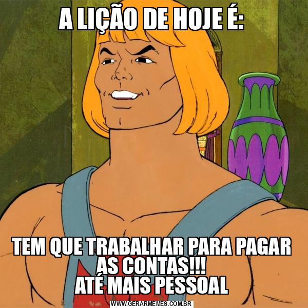 A LIÇÃO DE HOJE É: TEM QUE TRABALHAR PARA PAGAR AS CONTAS!!! ATÉ MAIS PESSOAL