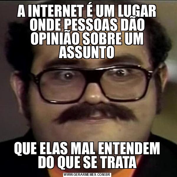 A INTERNET É UM LUGAR ONDE PESSOAS DÃO OPINIÃO SOBRE UM ASSUNTO QUE ELAS MAL ENTENDEM DO QUE SE TRATA