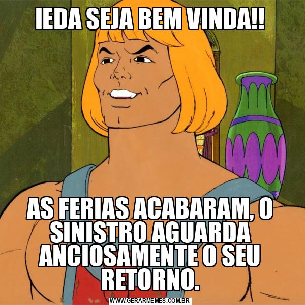 IEDA SEJA BEM VINDA!! AS FERIAS ACABARAM, O SINISTRO AGUARDA ANCIOSAMENTE O SEU RETORNO.