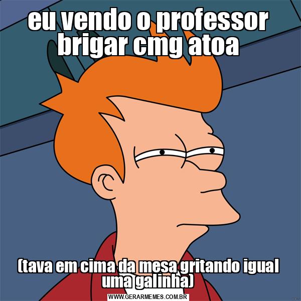 eu vendo o professor brigar cmg atoa (tava em cima da mesa gritando igual uma galinha)