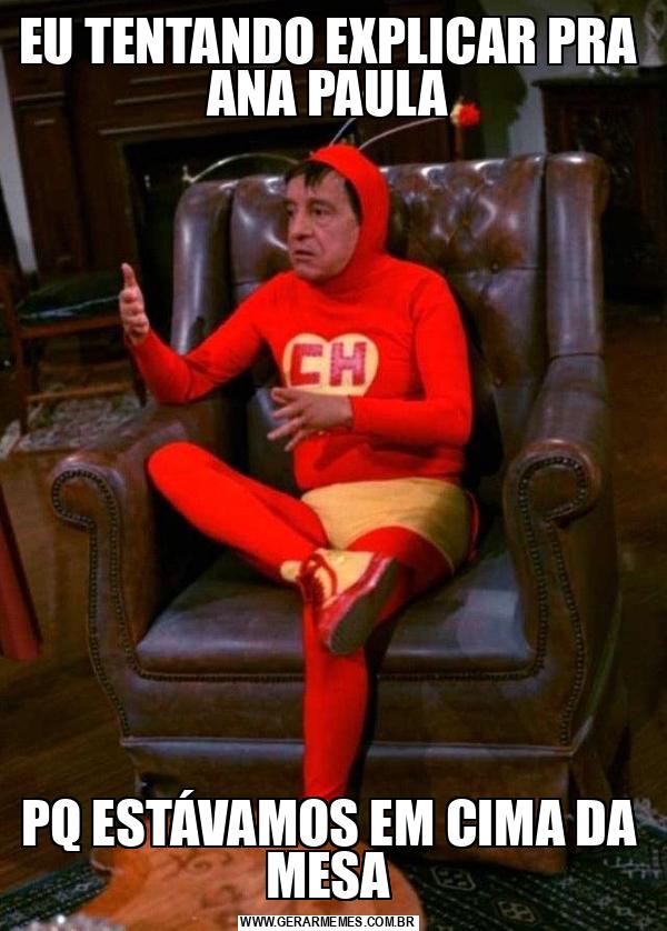 EU TENTANDO EXPLICAR PRA ANA PAULA PQ ESTÁVAMOS EM CIMA DA MESA