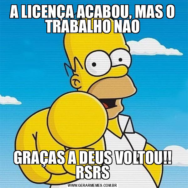 A LICENÇA ACABOU, MAS O TRABALHO NAO GRAÇAS A DEUS VOLTOU!! RSRS