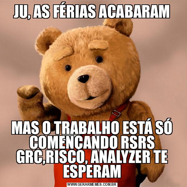 JU, AS FÉRIAS ACABARAM MAS O TRABALHO ESTÁ SÓ COMENÇANDO RSRS GRC,RISCO, ANALYZER TE ESPERAM