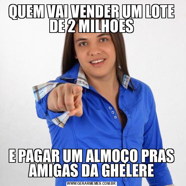 QUEM VAI VENDER UM LOTE DE 2 MILHOES E PAGAR UM ALMOÇO PRAS AMIGAS DA GHELERE