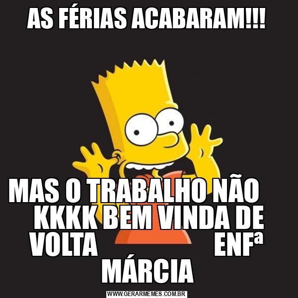 AS FÉRIAS ACABARAM!!! MAS O TRABALHO NÃO KKKK BEM VINDA DE VOLTA ENFª MÁRCIA