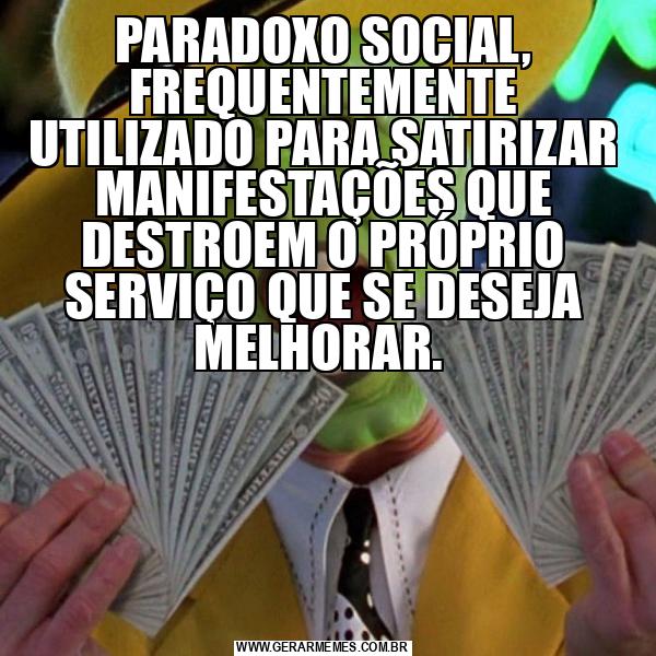 PARADOXO SOCIAL, FREQUENTEMENTE UTILIZADO PARA SATIRIZAR MANIFESTAÇÕES QUE DESTROEM O PRÓPRIO SERVIÇO QUE SE DESEJA MELHORAR.
