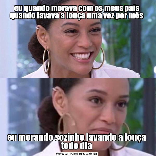 eu quando morava com os meus pais quando lavava a louça uma vez por mês eu morando sozinho lavando a louça todo dia