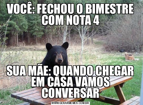 VOCÊ: FECHOU O BIMESTRE COM NOTA 4 SUA MÃE: QUANDO CHEGAR EM CASA VAMOS CONVERSAR