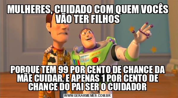 MULHERES, CUIDADO COM QUEM VOCÊS VÃO TER FILHOS PORQUE TEM 99 POR CENTO DE CHANCE DA MÃE CUIDAR, E APENAS 1 POR CENTO DE CHANCE DO PAI SER O CUIDADOR