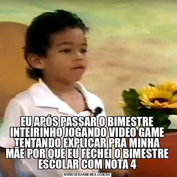 EU APÓS PASSAR O BIMESTRE INTEIRINHO JOGANDO VIDEO GAME TENTANDO EXPLICAR PRA MINHA MÃE POR QUE EU FECHEI O BIMESTRE ESCOLAR COM NOTA 4