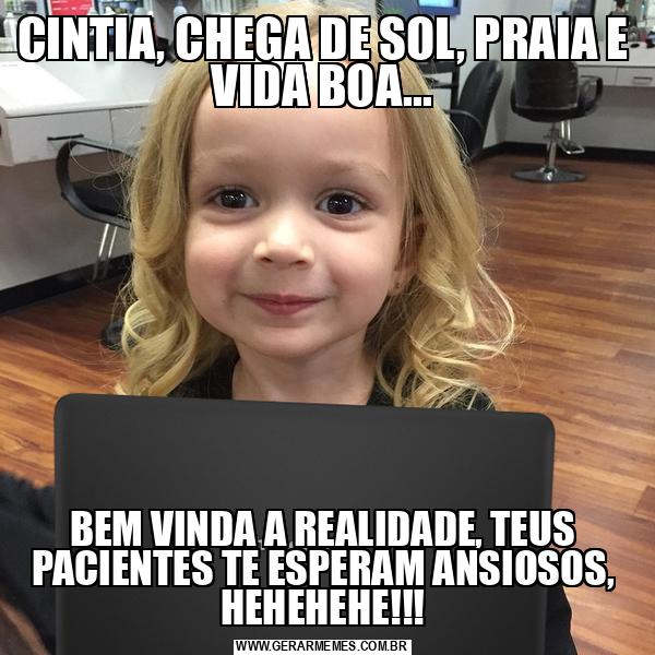 CINTIA, CHEGA DE SOL, PRAIA E VIDA BOA... BEM VINDA A REALIDADE, TEUS PACIENTES TE ESPERAM ANSIOSOS, HEHEHEHE!!!