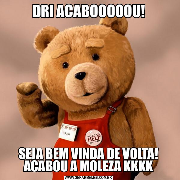 DRI ACABOOOOOU! SEJA BEM VINDA DE VOLTA! ACABOU A MOLEZA KKKK