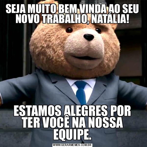SEJA MUITO BEM VINDA AO SEU NOVO TRABALHO, NATÁLIA! ESTAMOS ALEGRES POR TER VOCÊ NA NOSSA EQUIPE.