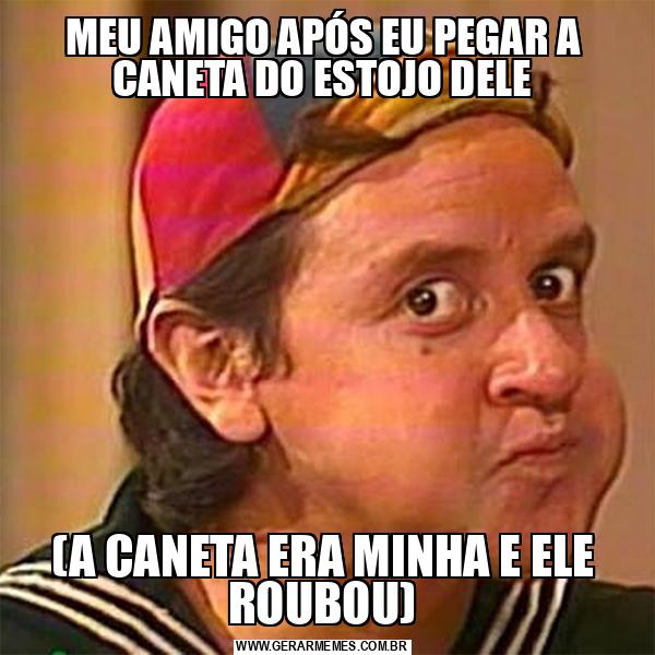 MEU AMIGO APÓS EU PEGAR A CANETA DO ESTOJO DELE (A CANETA ERA MINHA E ELE ROUBOU)