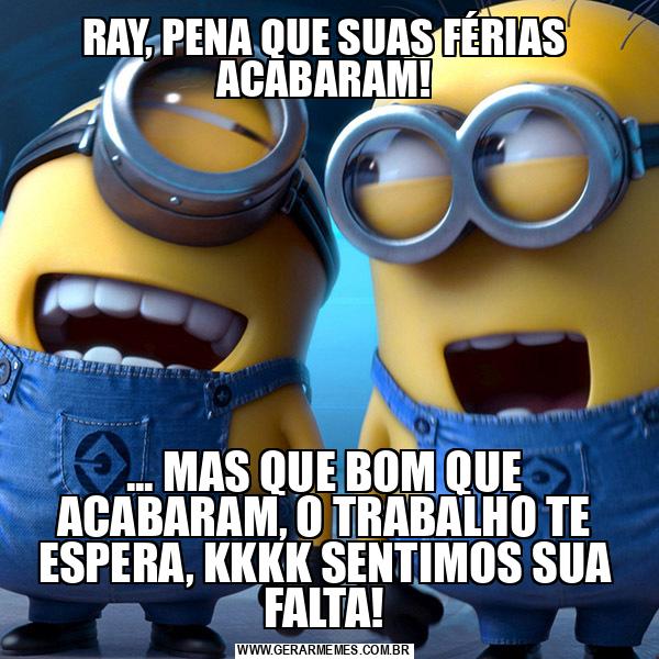 RAY, PENA QUE SUAS FÉRIAS ACABARAM! ... MAS QUE BOM QUE ACABARAM, O TRABALHO TE ESPERA, KKKK SENTIMOS SUA FALTA!
