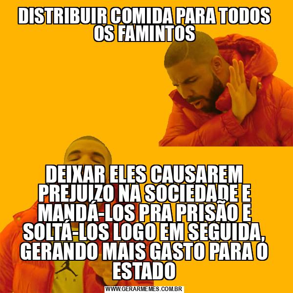 DISTRIBUIR COMIDA PARA TODOS OS FAMINTOS DEIXAR ELES CAUSAREM PREJUIZO NA SOCIEDADE E MANDÁ-LOS PRA PRISÃO E SOLTÁ-LOS LOGO EM SEGUIDA, GERANDO MAIS GASTO PARA O ESTADO