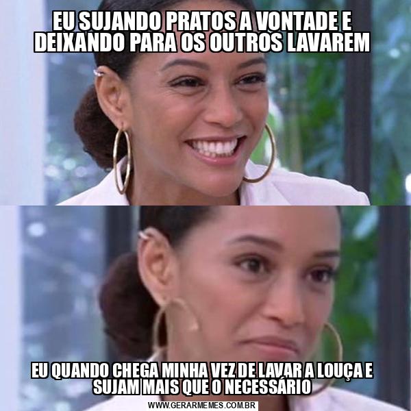 EU SUJANDO PRATOS A VONTADE E DEIXANDO PARA OS OUTROS LAVAREM EU QUANDO CHEGA MINHA VEZ DE LAVAR A LOUÇA E SUJAM MAIS QUE O NECESSÁRIO