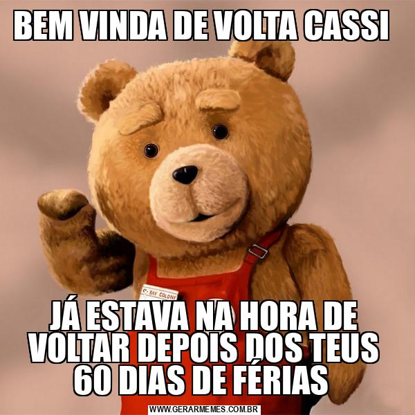 BEM VINDA DE VOLTA CASSI JÁ ESTAVA NA HORA DE VOLTAR DEPOIS DOS TEUS 60 DIAS DE FÉRIAS