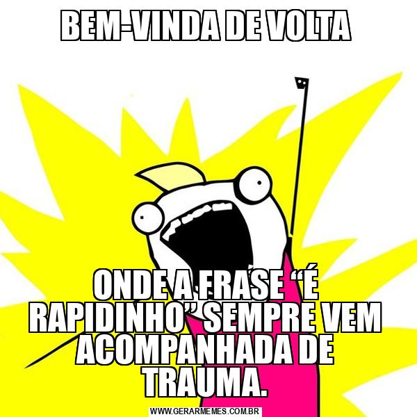 BEM-VINDA DE VOLTA ONDE A FRASE “É RAPIDINHO” SEMPRE VEM ACOMPANHADA DE TRAUMA.