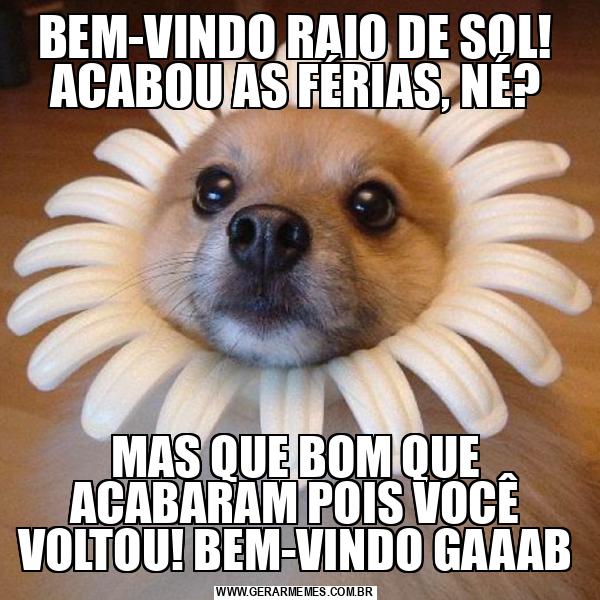 BEM-VINDO RAIO DE SOL! ACABOU AS FÉRIAS, NÉ? MAS QUE BOM QUE ACABARAM POIS VOCÊ VOLTOU! BEM-VINDO GAAAB