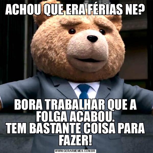 ACHOU QUE ERA FÉRIAS NE? BORA TRABALHAR QUE A FOLGA ACABOU. TEM BASTANTE COISA PARA FAZER!