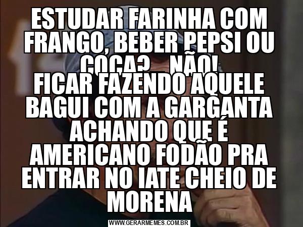 ESTUDAR FARINHA COM FRANGO, BEBER PEPSI OU COCA?... NÃO! FICAR FAZENDO AQUELE BAGUI COM A GARGANTA ACHANDO QUE É AMERICANO FODÃO PRA ENTRAR NO IATE CHEIO DE MORENA