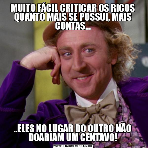 MUITO FÁCIL CRITICAR OS RICOS QUANTO MAIS SE POSSUI, MAIS CONTAS... ..ELES NO LUGAR DO OUTRO NÃO DOARIAM UM CENTAVO!