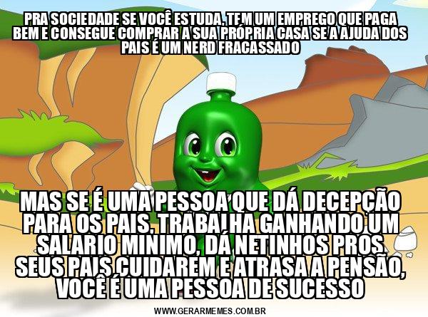 PRA SOCIEDADE SE VOCÊ ESTUDA, TEM UM EMPREGO QUE PAGA BEM E CONSEGUE COMPRAR A SUA PRÓPRIA CASA SE A AJUDA DOS PAIS É UM NERD FRACASSADO MAS SE É UMA PESSOA QUE DÁ DECEPÇÃO PARA OS PAIS, TRABALHA GANHANDO UM SALARIO MINIMO, DÁ NETINHOS PROS SEUS PAIS CUIDAREM E ATRASA A PENSÃO, VOCÊ É UMA PESSOA DE SUCESSO