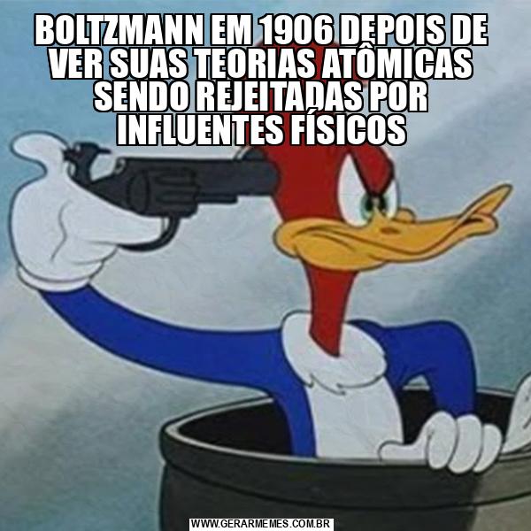 BOLTZMANN EM 1906 DEPOIS DE VER SUAS TEORIAS ATÔMICAS SENDO REJEITADAS POR INFLUENTES FÍSICOS