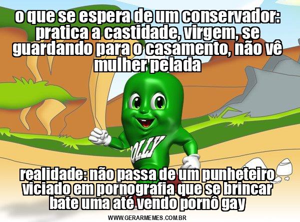 o que se espera de um conservador: pratica a castidade, virgem, se guardando para o casamento, não vê mulher pelada realidade: não passa de um punheteiro viciado em pornografia que se brincar bate uma até vendo pornô gay