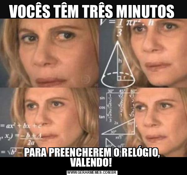 VOCÊS TÊM TRÊS MINUTOS PARA PREENCHEREM O RELÓGIO, VALENDO!